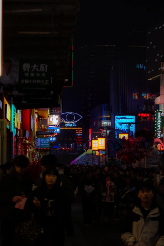 都市夜晚的繁华景象,具有浓厚的氛围感。色彩运用得当,霓虹灯的鲜艳色彩与周围的黑暗形成了鲜明的对比,增强了照片的视觉冲击力。光影处理不错,不仅展现了夜晚灯光的明亮,还通过阴影突出了主体人物和街道的繁忙。构图紧凑,人群和建筑物形成了密集的画面,给人一种城市生活的紧张感和动态感。照片通过展现城市夜生活,引发了观者对都市繁忙节奏与人群流动的共鸣和思考。 2024年1月15日