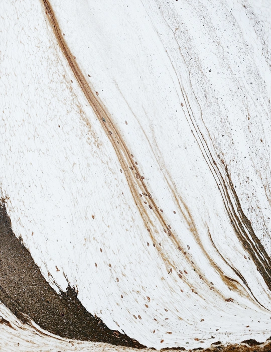 构图简洁但富有张力。画面的线条流畅自然,白色背景与深色形成鲜明对比,突显主题,且色彩对比强烈增强了画面的视觉冲击力。通过巧妙运用自然的纹理和色彩,成功吸引了观者的注意并引发思考。光影效果均匀,后期处理细致,使得整体画面看起来干净且具有视觉美感。