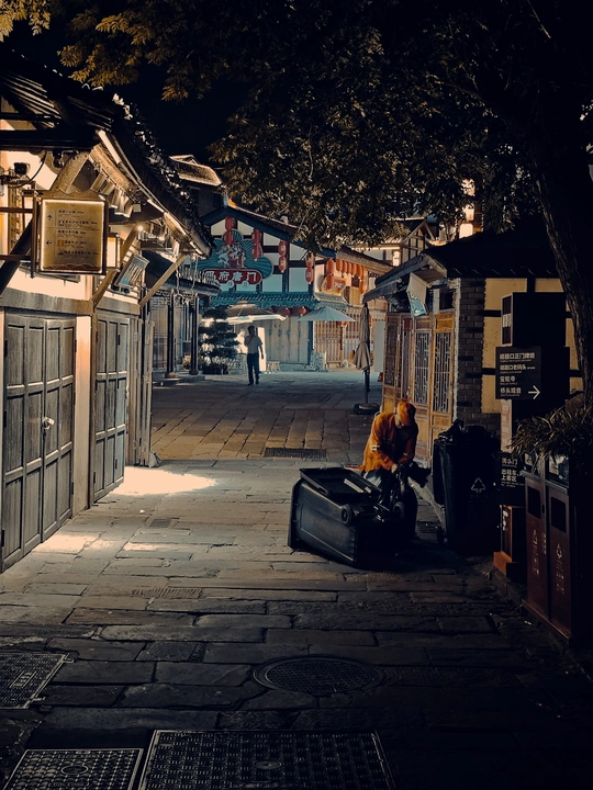 晚上10点了环卫工人们依然忙碌在街头巷尾,他们借助昏黄的路灯,清理着一天的垃圾,他们用自己的勤劳和汗水,为城市创造了一个整洁、舒适的环境,他们是城市的守护者,让我们向这些辛勤的环卫工人们致敬,感谢他们为城市做出的贡献!