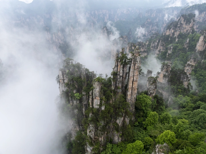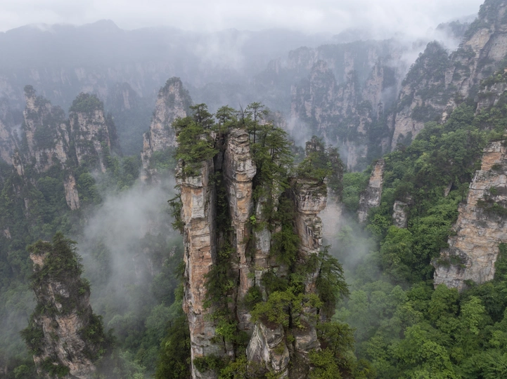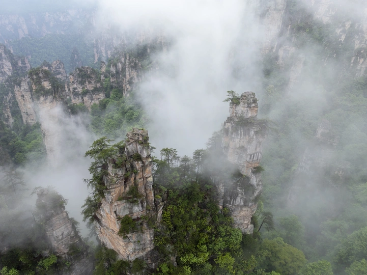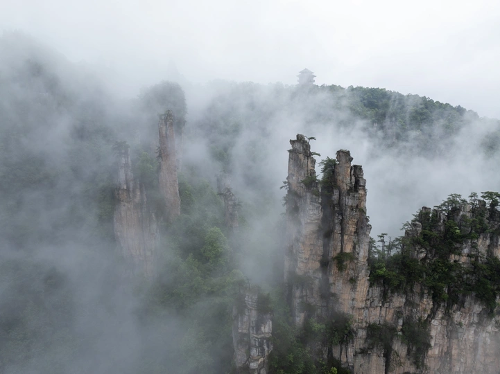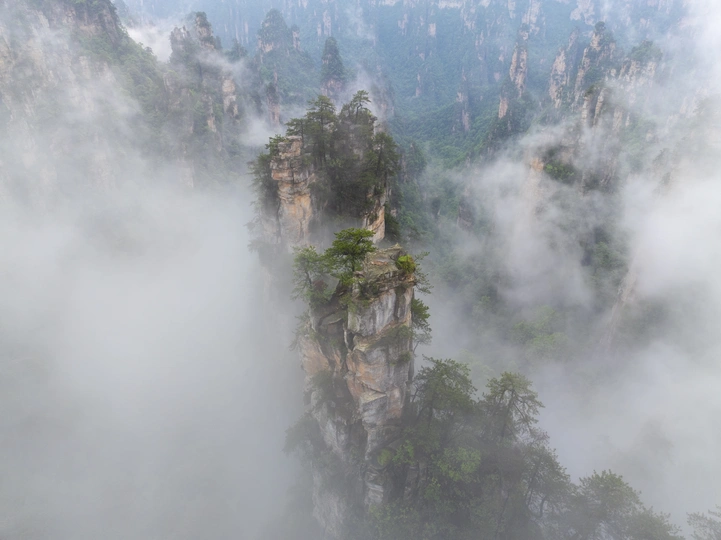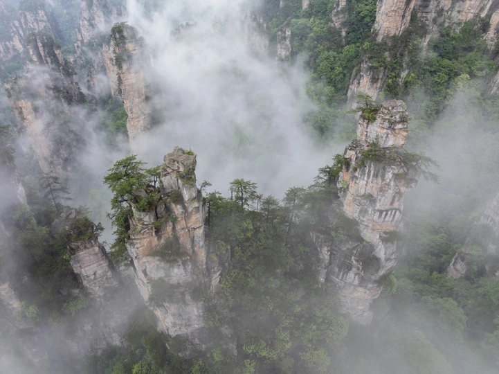 去张家界拍摄最适合的天气就是阴雨天气,下雨就有云雾! 航拍也是最好的摄影工具,可以在不同的角度进行拍摄! 分享一组原片直出的拍摄原图