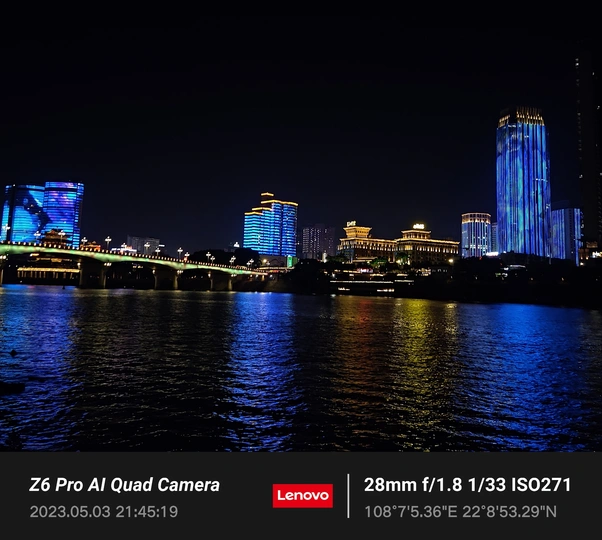 从邕江南岸向北拍摄的南宁邕江大桥和市中心的夜景。