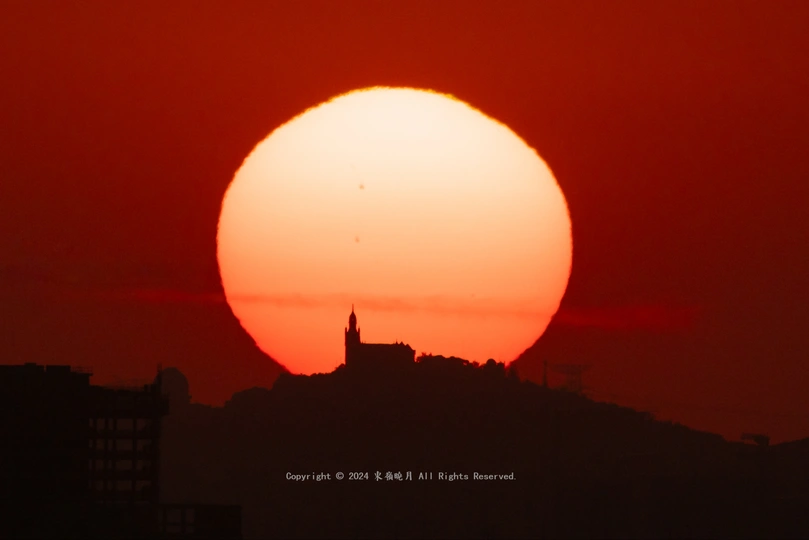 经过准确计算,一轮红日从佘山之巅缓缓落下