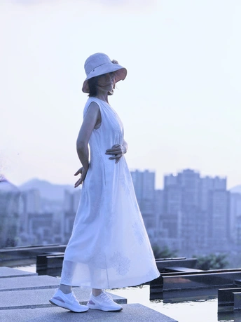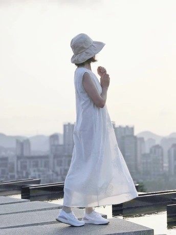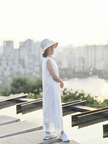 照片展示了一位六十多岁,身材保持良好、心态年轻的女性,站在一个城市的高处,身着白色长裙,戴着宽边帽子,显得优雅而自在。她的姿态从容,仿佛在享受这片刻的宁静与美好。这幅画面不仅展现了她外在的优雅,更传递出她内心的阳光与快乐。 拍摄老年人时,往往会面临一个选择:是通过后期修饰来追求表面的完美,还是尊重和展示自然的状态?我认为,摄影的意义在于捕捉真实与感动,尤其是在拍摄像这位女士这样充满生活气息的老年人时,更应该注重呈现他们的优雅自如,而非通过过度修饰来掩盖岁月的痕迹。 这组照片力求一种自然的美。她的身材保持得很好,她心态年轻,充满活力,这不仅体现在她的外表,更体现在她从容自信的姿态中。这样的瞬间,是岁月沉淀下来的美,是生活给予她的奖赏。 阳光下,白色的长裙与宽边帽子映衬着她的优雅,背景中的城市景色则为她增添了一层现代感。通过构图与光影的运用,捕捉她的独特气质。这种自然的美感是任何后期修饰都无法替代的,因为它源自于她真实的生活与经历。 没有磨皮或美白,保留了她皮肤的自然质感和面料的细腻纹理。这种真实的呈现不仅不会削弱她的美,反而使她更加动人。