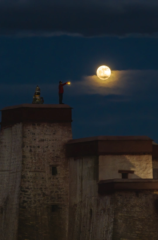 在西藏江孜宗山古堡的顶端抓一个月亮🌙