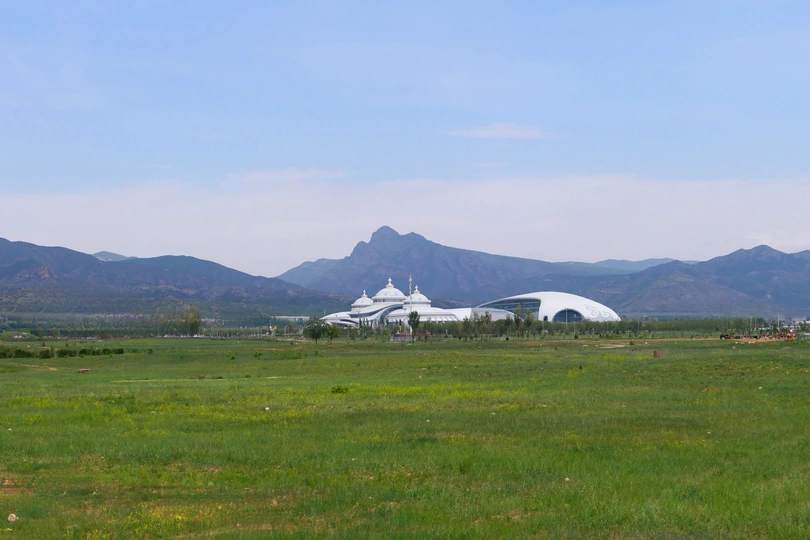 阴山下,敕勒川草原上中国最大的蒙古包—呼和塔拉会议中心。