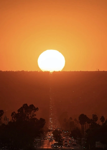于一个宁静的早晨,大地还沉浸在夜幕的宁静中。远处的山峦和树木在晨光中若隐若现,一切都显得那么安静、祥和。突然,太阳从地平线上升起,它的光芒逐渐驱散了黑暗,将世界染上了一层金色的光辉。