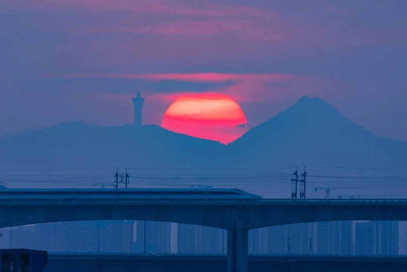 值了一天班的太阳正搭乘中国号高铁🚄回家…!