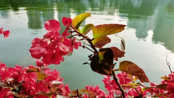 早晨的府南河,花朵以水为家。