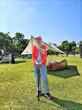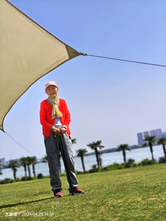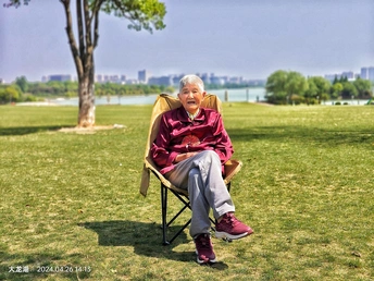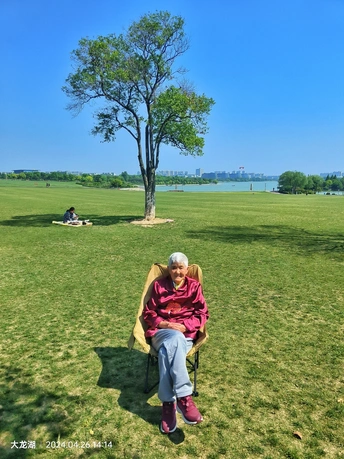 4月26日,乘地铁来到大龙湖。地铁的升降电梯出口比较偏僻,出来走了一会。 大龙湖风景的确很漂亮,大草坪让人眼睛一亮,给人很舒服的感觉,很多人带了帐篷,还有人在放风筝,找人借了张折叠椅给母亲拍了几张照片。眼前的景致让母亲的心情很好,我们一直走到湖边,又在草坪上找个树荫坐着休息了好久。 今天这一趟很值得,下次还要来。
