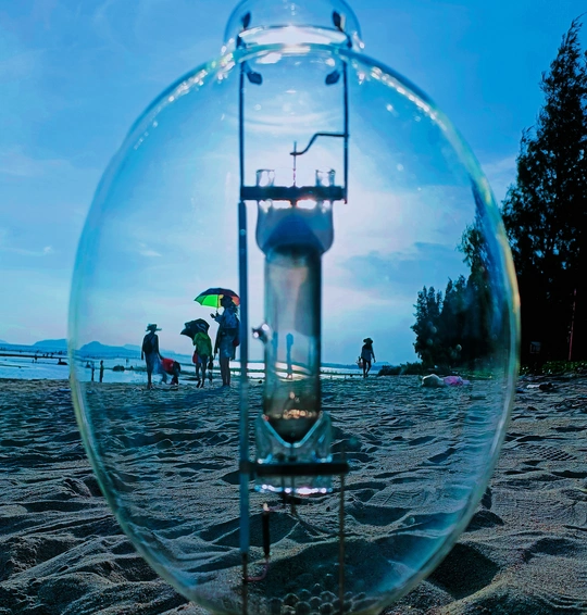 照片巧妙地运用了前景和背景的对比,通过透明灯泡的独特视角,使画面构图富有创意和新意。光线处理得当,背光的效果制造了剪影感,增强了主题的突出性。色彩表现自然,蓝天和海滩的主色调运用协调,使人有一种放松和愉悦的感觉,这也帮助观者身临其境,产生共鸣。然而,细节方面若能进一步提升,比如前景和背景的清晰度对比,以及灯泡内外光影的处理,可能会使作品更具深度和层次感。后期处理可以稍微加强色彩的对比度和饱和度,以此来增加画面的视觉冲击力。另外,通过调整拍摄角度,研究不同的透明物体的反光效果,可能会带来更多有趣的尝试和突破。总的来说,这是一张具有创意且完成度较高的作品,但仍然有提升的空间。