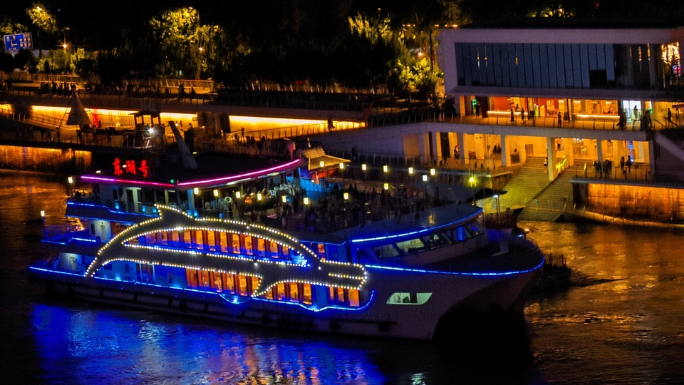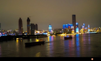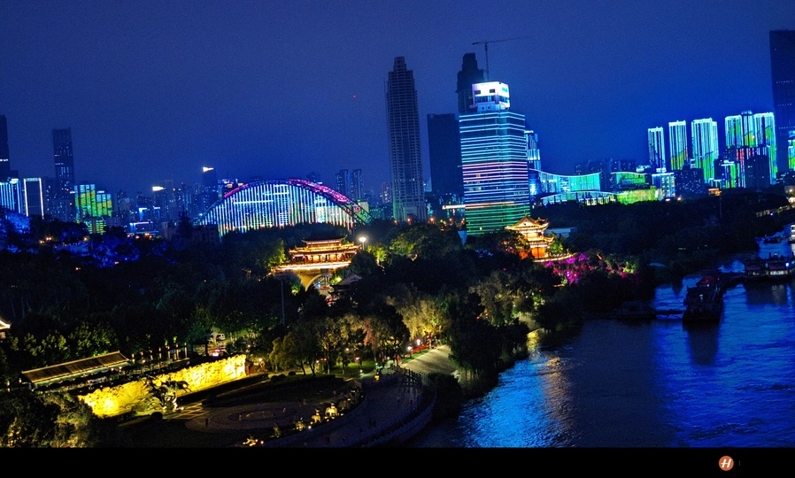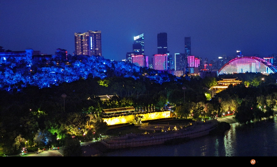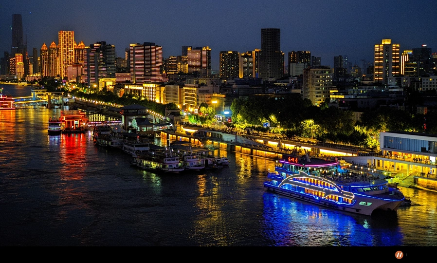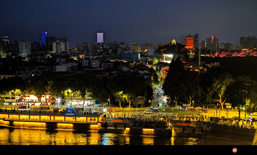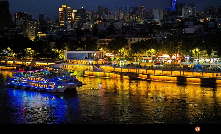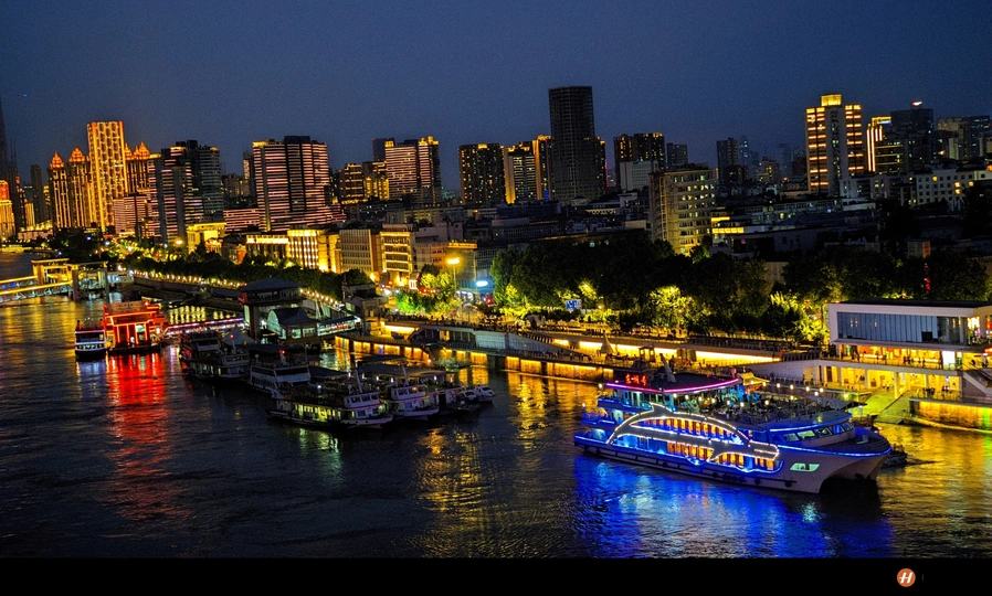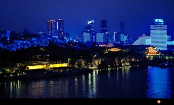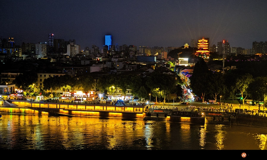 武汉,繁华的大都市,的夜晚灯光璀璨,安静的港湾,美丽而宁静,远处的黄鹤楼奕奕生辉。
