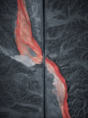 「大地之血」在青海大柴旦镇去往芒崖方向315国道757里程碑处,有着一个神奇干枯河床,因硫元素的浸蚀,所以土壤层和土层皆展现如同血液的红色,在无人机视角下宛如一幅大地“血液”在流淌的画面,因故而被世人皆称“大地之血”。