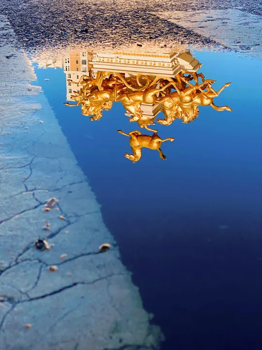 拍摄于牡丹江一个中心转盘,下雨后留下一滩水,倒映看起来很不错。