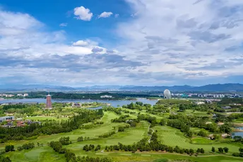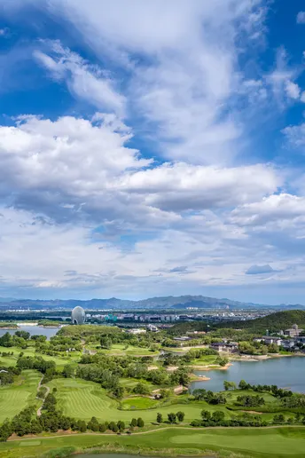 西山栈道下的雁栖湖在雨后被冲刷一新。 当乌云散去后,天空变得如水晶般清澈。