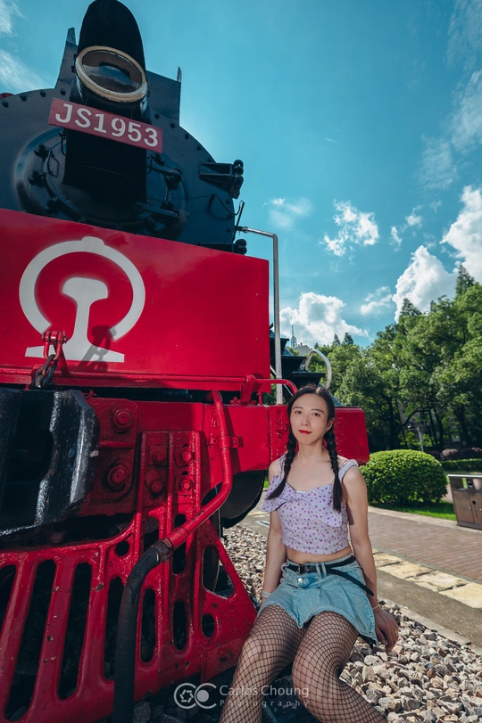 第一次尝试使用超广角+闪光灯+大白天 自拍人像。对于风光狗来说,这个有点难。难点如下: 1⃣️盲拍,拍完拍到相机前看,再跑回去调整姿势,可能刚才拍清楚了但是姿势不行,可能姿势好但是没对好焦。 2⃣️超广角要尽量避免人物的头部接近画面边缘以免畸变。 3⃣️闪光灯要开启高速同步,用快门压暗环境光,使用离机闪要注意光的角度和位置。 4⃣️快速确定曝光要素的方法我这里有个经验:相机M档,光圈根据你的喜好,喜欢背景虚化用大光圈。感光度100。快门速度以环境昏暗为准,我当时是f2.8 1/3200s iso100 闪光灯1/32功率。 相机距离自己大概1米,灯就放在相机旁边,直闪对人。 回来调整一下整体影调、人物的肤色、磨皮、液化、调色。该打码的打码 对了再介绍一下火车头,这个是真火车,是一个用煤炭点火烧水的蒸汽机,建设1953。 1946年,大连机车车辆厂对LV型蒸汽机车(代号LV1)进行改进设计,于1947年7月试制成功,机车出厂时,曾亲自登乘。经改进后的蒸汽机车命名为“建设型”,车型代号JS,并于同年9月投人批量生产。随后由大同机车工厂,大连机车车辆厂,戚墅堰机车车辆厂和二七机车工厂批量生产建设型蒸汽机车,成为中国铁路干线货运用主型机车。至1965年停产,大