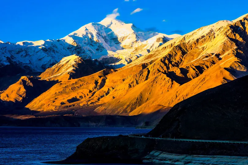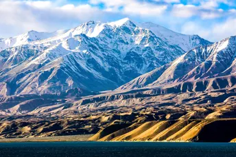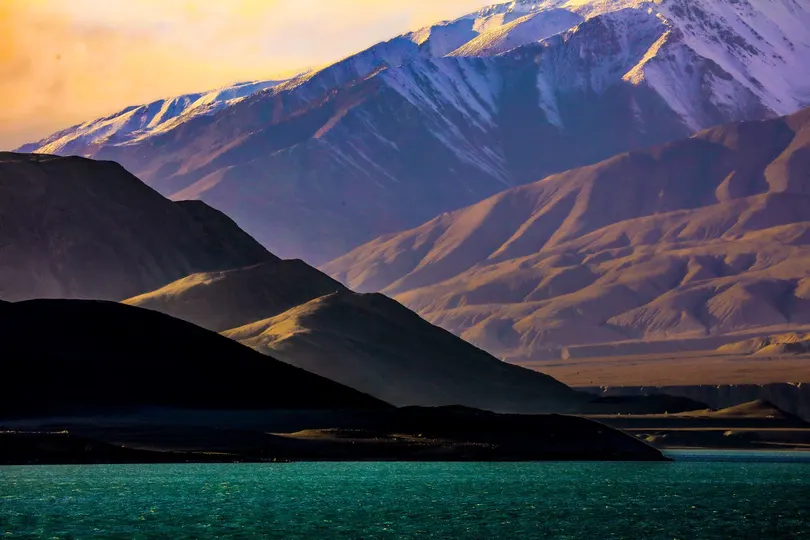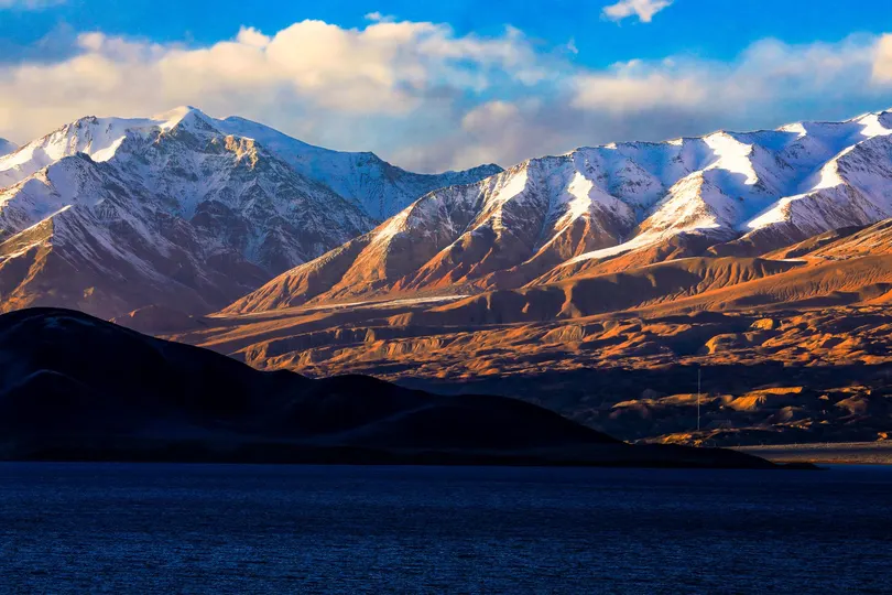 白沙湖,位于于新疆帕米尔高原塔什库尔干塔吉克县,慕士塔格峰和公格尔山下,雪山冰峰环抱,湖水清澈碧绿。特别是一半沙山一半湖水的美景闻名天下。