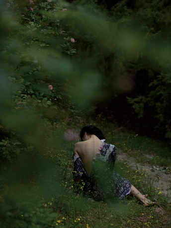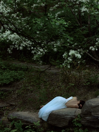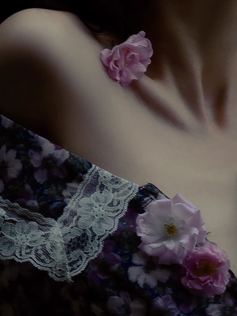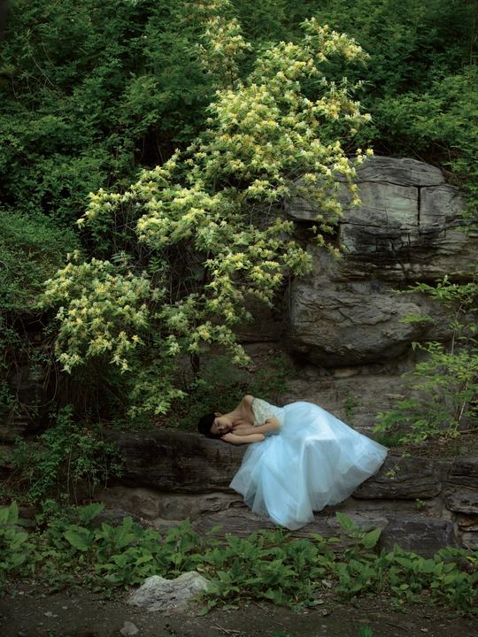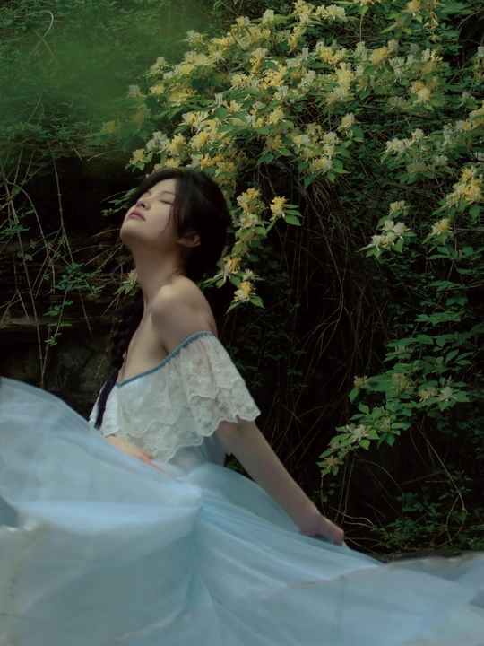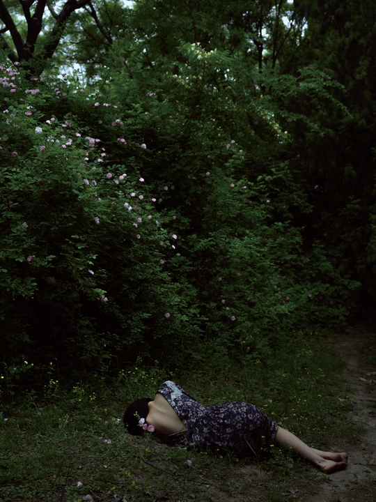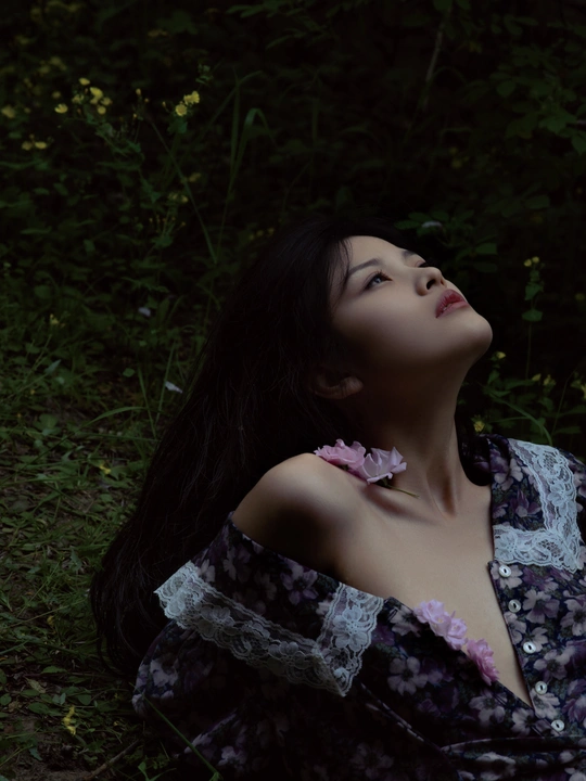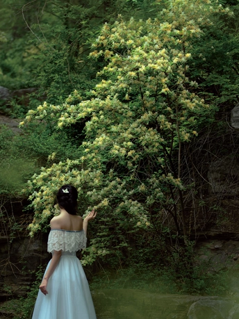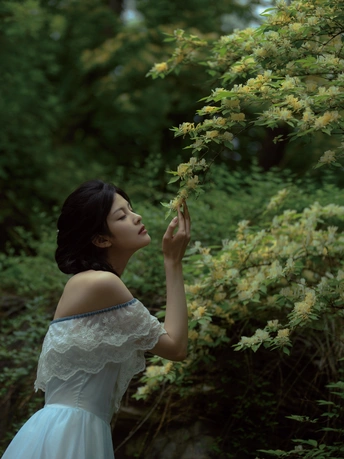 . 她用双手分开秀发 一支野樱花斜插着默默无语 另一支送给了谁 却从没人问起 … . 摄影/后期:春心未书 出镜:Vivian .