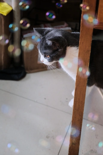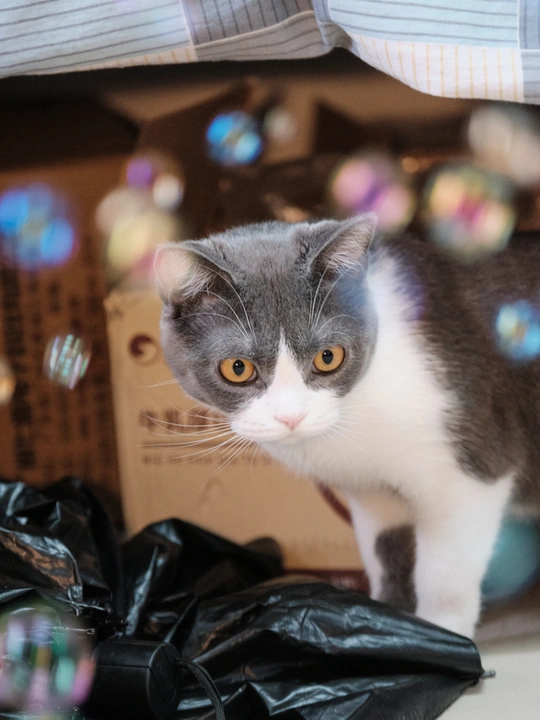 喵喵的日常:与泡泡的奇妙邂逅!看他的眼神,是不是充满了好奇和纯真?这就是我们爱宠物的原因吧,他们总能让我们找回那份遗失的童真。每天都有这样的小幸福,生活真的很美好。