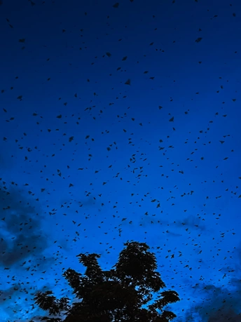 蓝调时刻,天空中的群鸟。