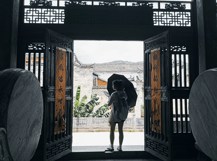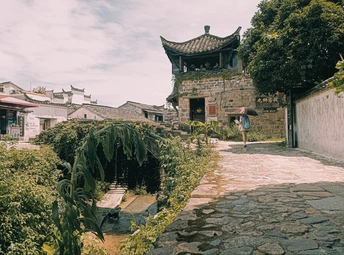 挑个天气,逛逛查济 九里烟,十里桥 酒家红旗,浣衣小溪 红楼桥,红楼阁, 一帘幽梦,两人行 菩萨画扇殷勤执 但求人间锦鲤气 我行我道, 拈花一笑。