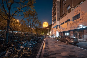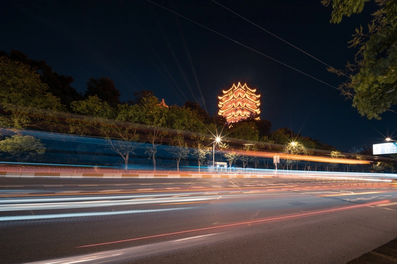 图一是一毛和黄鹤楼 图二是彭刘杨路的黄鹤楼 图三图四是黄鹤楼与车轨 设备:尼康z62+星曜9mm