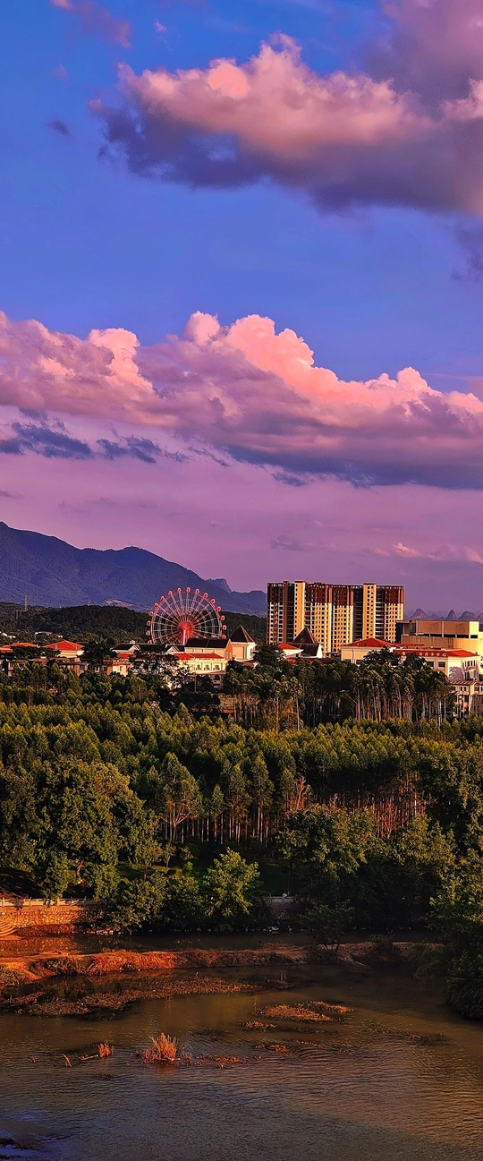 最美的风景不在画里,而在你眼里。 我们常常在寻找最美的风景,却往往忽略了最美的风景其实就藏在我们心中,或者就在我们眼前。人生就是一场旅行,不在乎目的地,而在乎沿途的风景和看风景的心情。累了,就停下来休息一下,放空自己,换个角度,你会发现另一种美丽。 风光无限好,只待你静静欣赏。美景溶于眼眸中,心动亦然。你的眼中藏着无尽的风光,每一寸景色都让人心旷神怡。美景无处不在,尽收眼底心欢快。心怀美好,景色宛如画中行。愿美景常伴左右,永驻心间不忘却。在美景的怀抱中,你感受大自然的温柔。 米拍AI点评: 这张照片色彩丰富,运用了较为成熟的色彩对比和和谐的过渡,尤其是天空的粉色云朵和地面的绿色植被形成鲜明对比,整体画面显得非常生动。光影的处理得当,夕阳的光线使云朵和景物显得立体,增加了画面的深度。构图上采用了三分法,天际线恰好位于三分之一处,有效地平衡了天空和地面之间的视觉比例,摩天轮作为点睛之笔,加强了画面的主题性。后期处理方面,有略微饱和度提升,使得颜色更加鲜艳,提升了视觉冲击力。综合评价,这是一张优秀的风景照片,色彩饱满。 @米拍社长@米拍编少@米拍编织部@米拍小助手@米拍汽车