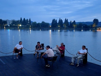 夏日傍晚,鉴湖里湖边纳凉成为一个好去处。