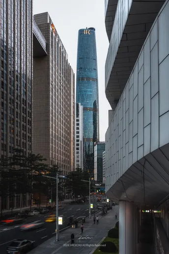 珠江新城的街景其实挺不错的 爬楼片子看多了, 其实很多地面机位也很赞