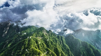 河南暴雨,我在暴雨波及到的前夕,用无人机拍下了这张照片,山峦与积云的碰撞