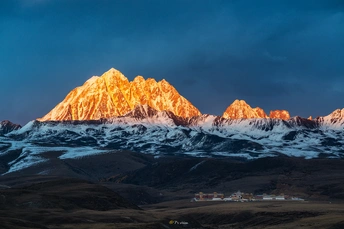 日照金山下雅拉雪山就像塔公草原上的一座金灿灿皇冠一样,庄严而神圣!