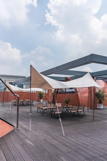 这座建于1904年的老图书馆是中国最早的地方公共图书馆之一,对许多人来说充满了回忆。它的新身份“A35红盒子”是一个集多功能于一体的现代化空间,包括地下1层、地上5层,建筑面积达到12621平方米。一到三层主要为商业配套设施,包括网红首店、主题餐饮和文创手作;四楼为多媒体艺术空间,其余区域为展陈空间和规划的半开放式影音艺术沙龙区域。五楼设有常州第40家“秋白书苑”,这不仅是一个阅读空间,还有常州首个“东坡雅集”书籍专区和新中式茶饮区“学轼茶”。此外,五楼还有一个628平方米的露台,供人们在夜幕降临时俯瞰老城厢的美景。