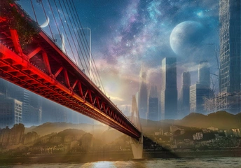 通向未来的桥梁横跨时光河流,连接过去和未来,承载梦想和挑战。 期待如钢铁般坚实 ,科技的飞速发展却随时间腐蚀着希望的桥梁,人类智慧能带来更美好的明天吗?这座桥通向星辰大海,也通向未知的危险。 担忧如影随形。桥下河水暗流,面对未知的风险和挑战,人类的贪婪和冲动却无时无刻的萌动着。也许我们应该时刻警惕着可能的崩塌,以保护我们的未来。 但愿这桥变得更加坚固。让我们跨越时光的河流,走向更加美好的明天。