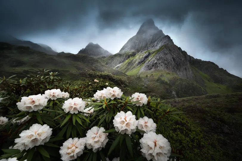 我在南极洛的4号湖附近发现了这一丛杜鹃,七月份大部分的卷叶杜鹃已经过了盛放的花期,开始凋谢了,但这一小丛开的却非常好,赏心悦目。