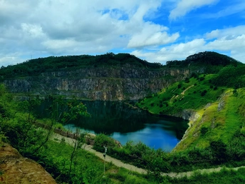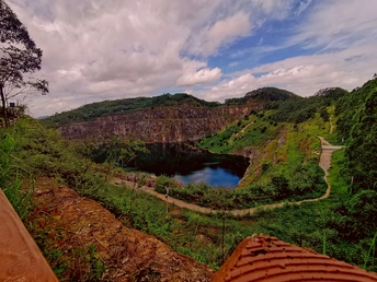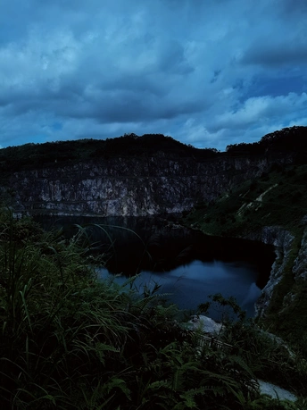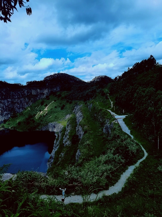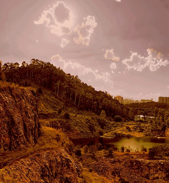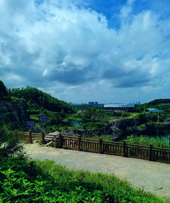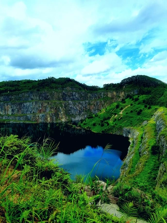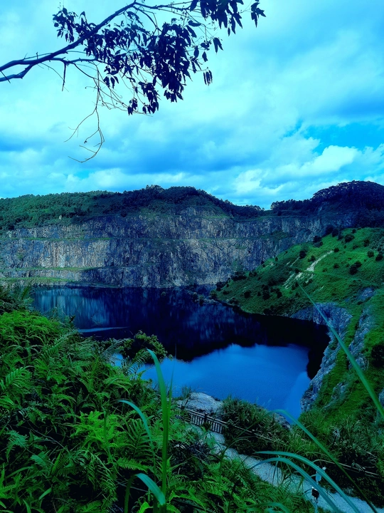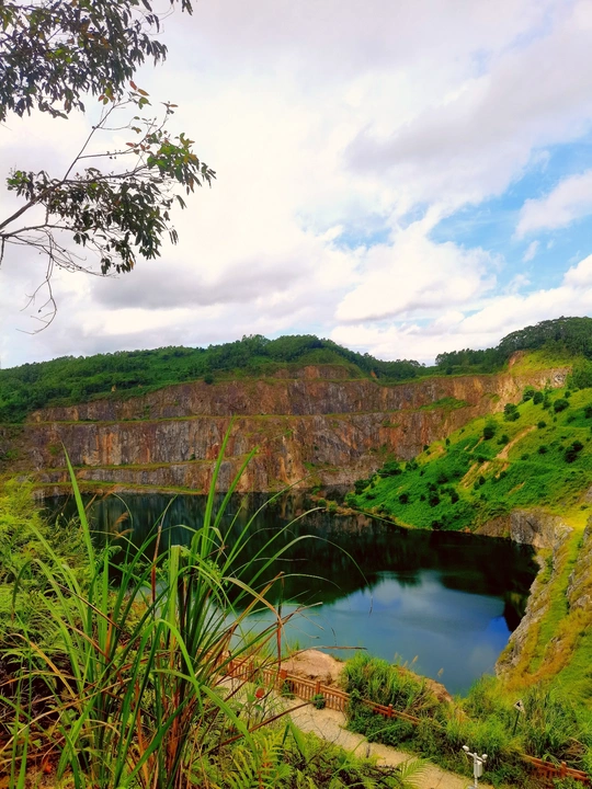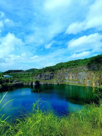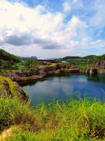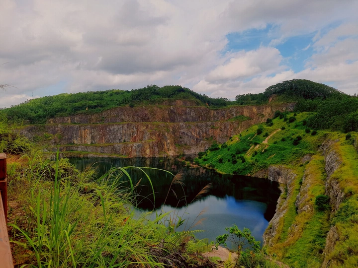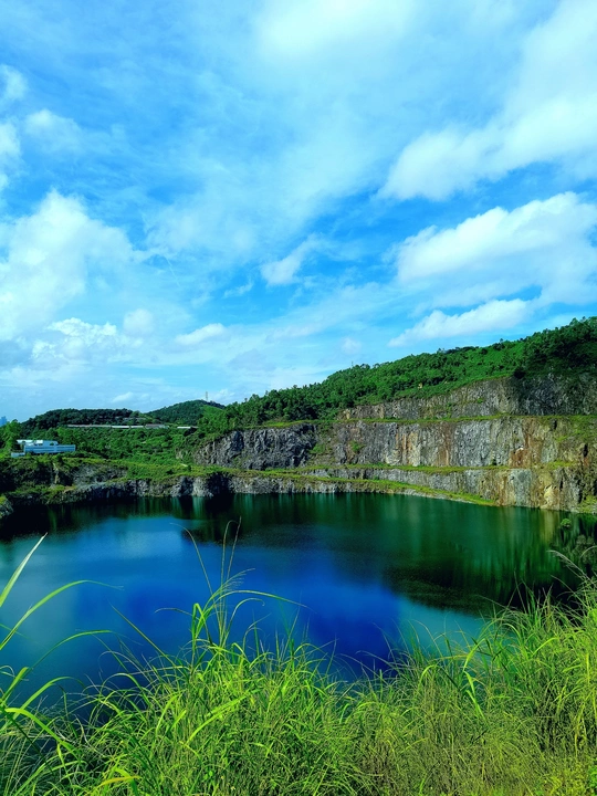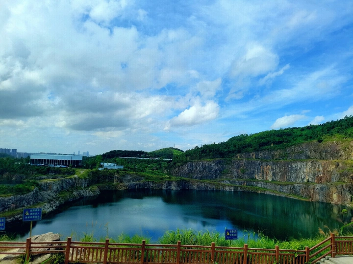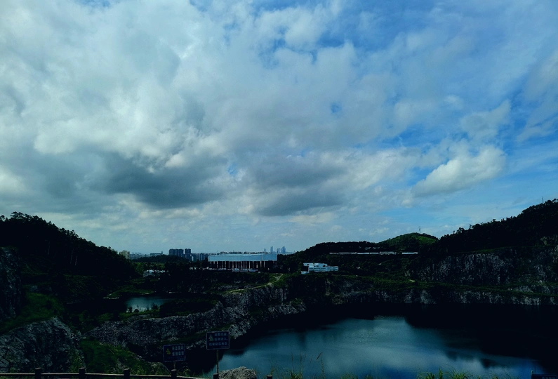 羊城黄埔与增城交汇界二十一号线镇龙西地铁站约五公里的一座旧采石场山顶天坑,蓝色潭水与蓝天云朵相辉映,弥漫着一缕淡淡的诗意忧伤。