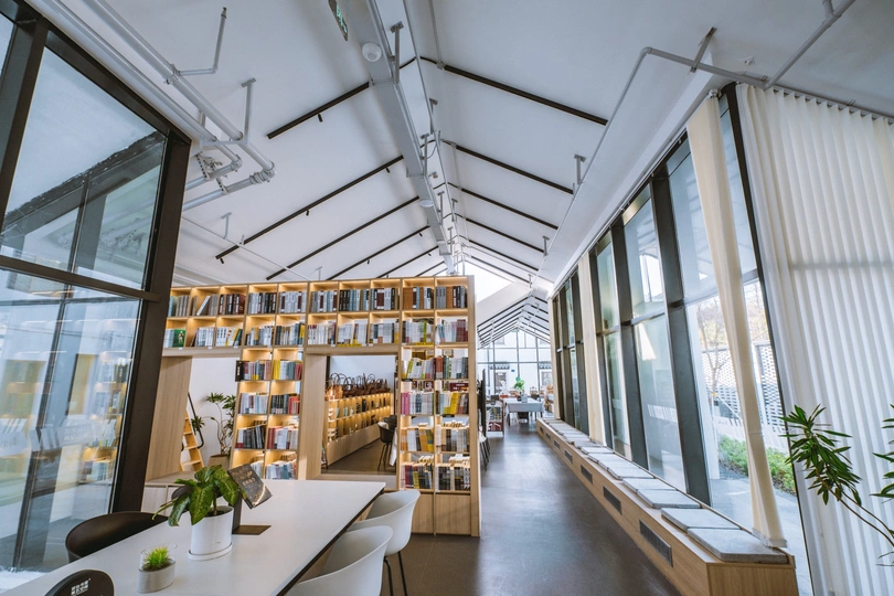 常州第五空间芸台书舍是一个融合了阅读、文化活动与现代休闲的综合性文化空间。它不仅是一个书店,更是一个文化聚集地和生活提案场所,提供了一个多功能的文化艺术体验空间。 芸台书舍第五空间以其独特的设计感和丰富的文化活动而著称。书店内部设计主体简约而注重细节,书架成为空间的骨架,而各类业态则为其增添内容。书店总面积近1000㎡,提供了充足的阅读空间,同时配备咖啡、轻餐、清吧等餐饮空间,满足不同顾客的需求。