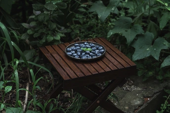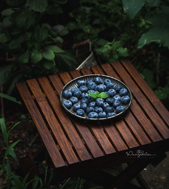 静物📸·蓝莓🫐 新桌子配蓝莓也太好看啦❗ 🤭有个小院子拍照真的很舒服,就是蚊子太多了。 今年争取拍个水果系列吧🌿