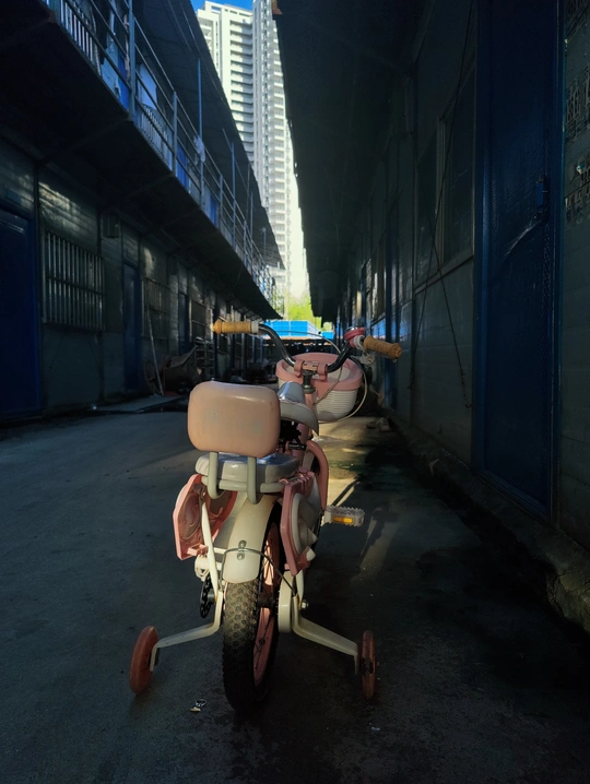 不管在什么环境 爱和童真都在 暑假了 孙女来看项目上的爷爷奶奶 而爷爷奶奶给她准备了自行车