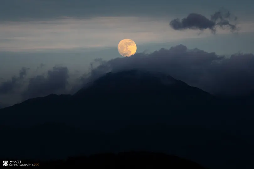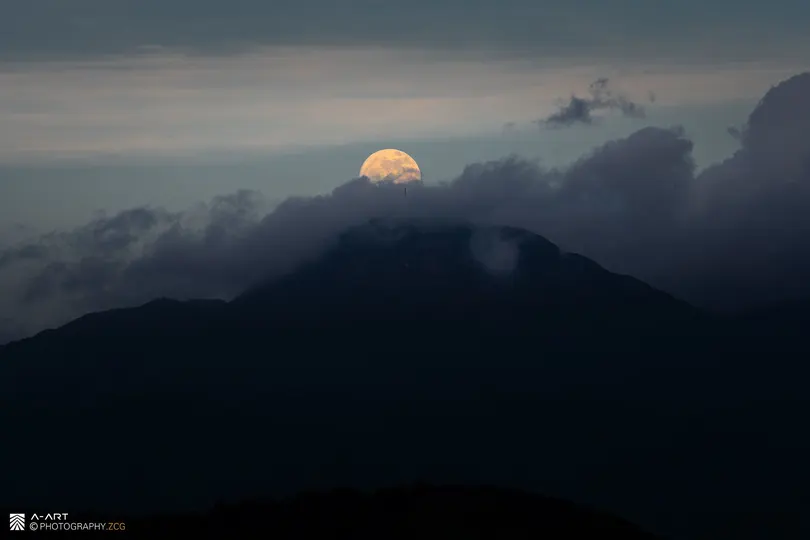 这次拍摄计划于一个月前,拍摄当天的天气几波阵雨,让人心中充满忐忑,没想到在下午5点多的时候天逐渐开朗,在6点35分,一轮金轮月从北峰山顶缓缓升起,一切都刚刚好,希望源自于热爱。@米拍 @米拍社长 @米拍编少