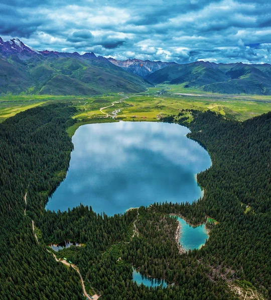 随着我的无人机慢慢上升,围观的小伙伴们不停“哇塞”~措普沟三连湖尽收眼底