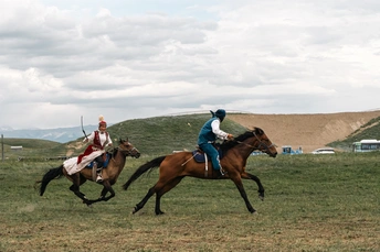 姑娘追在哈萨克语称为"克孜库瓦尔",不同氏族部落或地区的男女青年交错组合,一男一女两人一组。活动开始,二人骑马并走向指定地点。去的时候,小伙子可以向姑娘逗趣、开各种玩笑。按习惯,怎么嘻闹逗趣都不为过,姑娘也不会生气。到达指定地点以后,小伙子立即纵马急驰往回返,姑娘则在后面紧追不舍,追上后便用马鞭在小伙子的头上频频挥绕,甚至可以玩笑性质的抽打,以报复小伙子的调戏,小伙子不能还手。过去,此活动是哈萨克族男女青年反抗宗法封建礼教、摆脱父母包办婚姻和自由恋爱的一种方式,许多人就是通过这种戏谑性的追逐互相认识、互相了解而萌发了爱情,最终结成伴侣的。它现已成为一项饶有风趣的群众性体育活动,不少已婚的成年男女也喜欢参加。