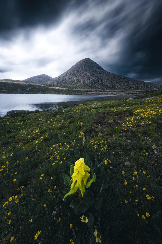 在格聂南线的路上我们经过了一座荒凉的石头山,与山上不同,山下的湖边生机勃勃。