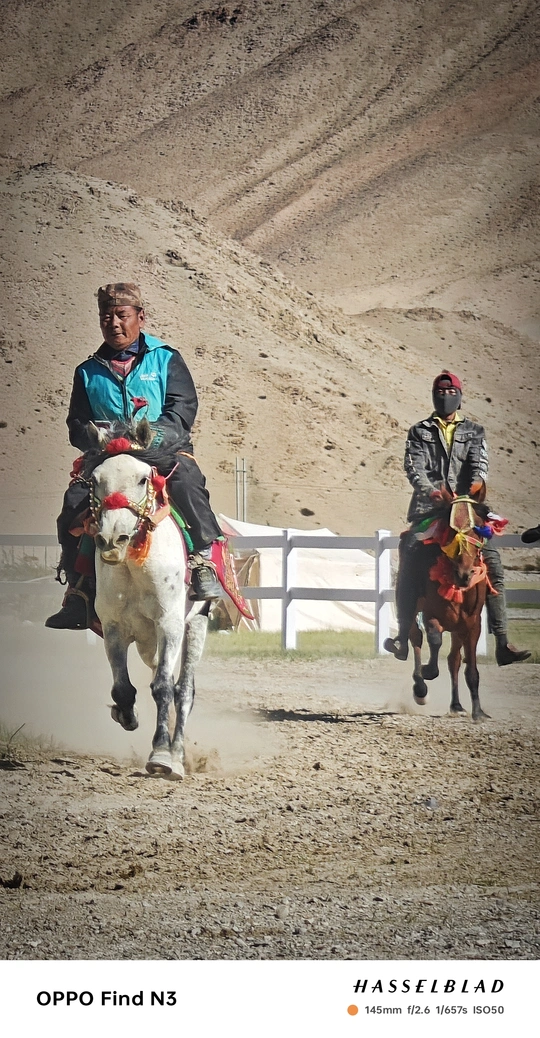 这个拍摄于西藏阿里扎西岗的赛马比赛。 这里的赛马与那些精心编排、充满华丽骑士服和优雅动作的传统赛马不同,这里的比赛展现了一种简单而朴实,甚至带有些许原始风貌的魅力。它不加修饰,纯粹而真实,如同高原上的风,清新而直接。