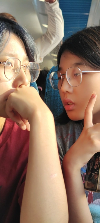 俗话说一百年修的擦肩而过,五百年修的同船渡。在回武汉的列车上对面坐着一对双胞胎姐妹,一样的严肃表情,一样的眼镜哈哈グッ!(๑•̀ㅂ•́)و✧