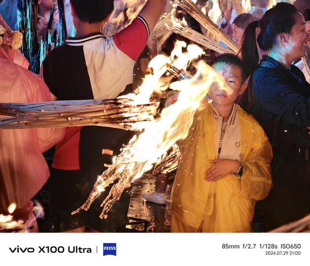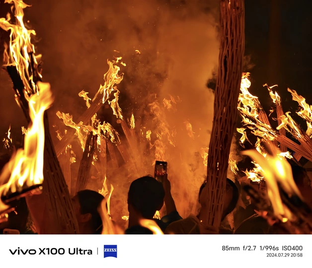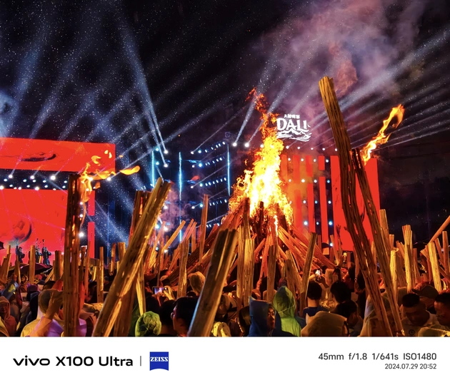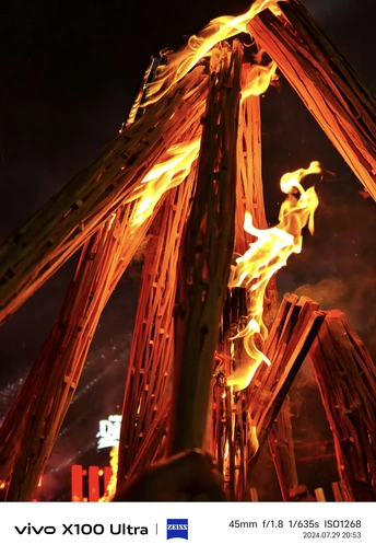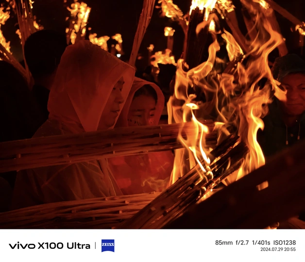 “炽烈火舌舞动于夜幕之下,古老祭典唤醒沉寂星辰,燃尽尘世万象。”