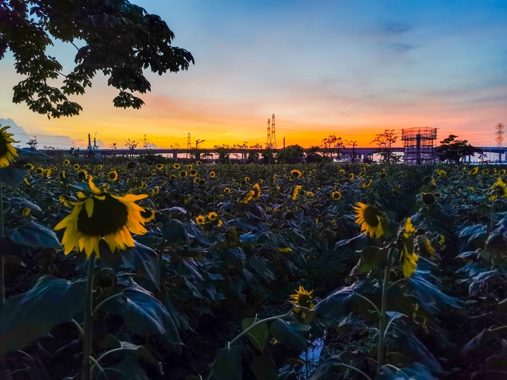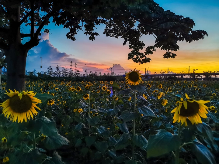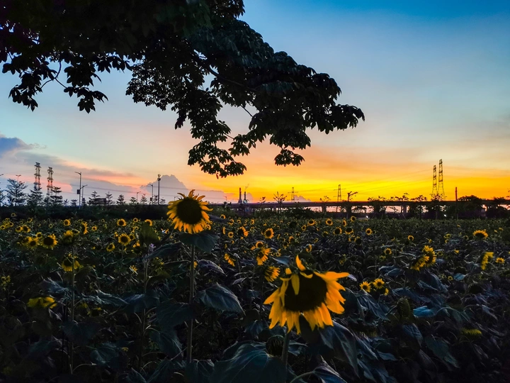 闷热的黄昏以为等不来出彩的时刻了,最后还是功夫不负有心人,当多巴胺色彩出现在向日葵花海的眼前,尽情地按下了手机拍照按钮。