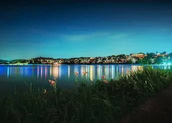 夜晚我来到玄武湖畔,被眼前的景色深深吸引,头顶夜空中忽明忽暗的星光,湖面被岸边灯光影映出五光十色,近处的小花随风轻舞仿佛诉说着她与湖水的故事,又一阵风拂过,我该收拾我的相机离开了,但我已经把“你”的美丽深拥入怀。