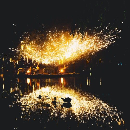 火树银花,犹如满天繁星散入人间!不愧是非遗传承文化,看一次震撼一次。