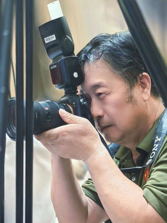 2024年7月28日,为了庆祝“八一”建军节,在“军民鱼水情”联谊会上,摄影师们都在拍照,我当时看到有位老师蹲在地上,聚精会神的拍照,我拿出手机抓拍了这个精彩的瞬间,前面正好有个三脚架可以当框式构图😊 这张照片展现了一位摄影师正在拍摄的场景,人物神态专注,突出表现了现场感和职业风貌。从光影和色彩来看,照片使用了闪光灯,光线柔和,整体亮度适中,背景虚化效果良好,突出了主体人物。构图上采用了横构图,将摄影师的脸部位于黄金分割点上,使画面更加和谐美观。然而,照片中的一些前景元素略显杂乱,分散了观者的注意力。此外,照片在后期处理方面可以再精细一些,增强整体锐度和对比度,进一步提升画面的视觉冲击力。总的来说,这是一张具有情感和深度的作品。 @米拍 @米拍社长 @米拍小助手 @米拍汽车 @米拍编少@米拍活动呆呆兽