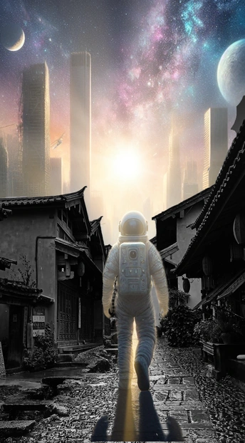 这是一幅试图探讨传统与未来的作品,使用了摄影作品与AI相融合的手法。传统与未来之间的对话总是引人入胜。两者之间的交织和冲突,以及它们对社会、文化和个体的影响,都是令人着迷的话题。 文化传承与创新:传统是我们从祖先那里继承下来的,但未来需要创新和变革。如何平衡这两者?我们应该保持传统,还是追求更大的进步? 技术与人性:随着科技的发展,我们面临着许多伦理和道德挑战。人工智能、基因编辑、虚拟现实等技术将如何改变我们的生活和文化? 宗教与世俗:宗教传统在人类历史上扮演着重要角色。但随着世俗主义的兴起,宗教信仰是否会逐渐减弱?或者它们会继续共存? 环境与可持续性:传统的生活方式通常与自然环境有紧密联系。但现代社会的发展是否会破坏这种联系?我们如何在保护传统的同时实现可持续发展? 这些问题只是冰山一角。无论是历史、哲学、宗教还是文化,都有无限的探讨空间。