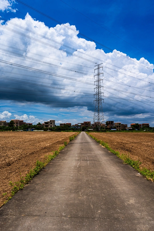 在这片云幕之下,电线杆静静地矗立。电线杆上,错综复杂的线路交织着现代生活的脉搏。